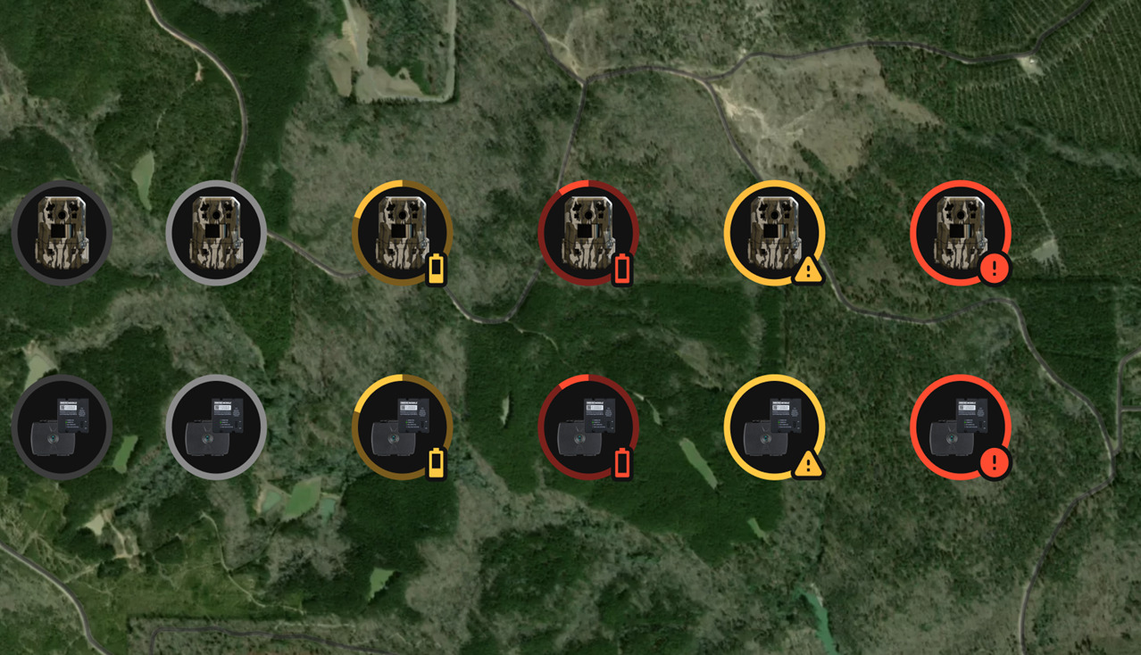 - Battery Indicators and Health Check Warnings can be seen directly on the device pin in maps.
