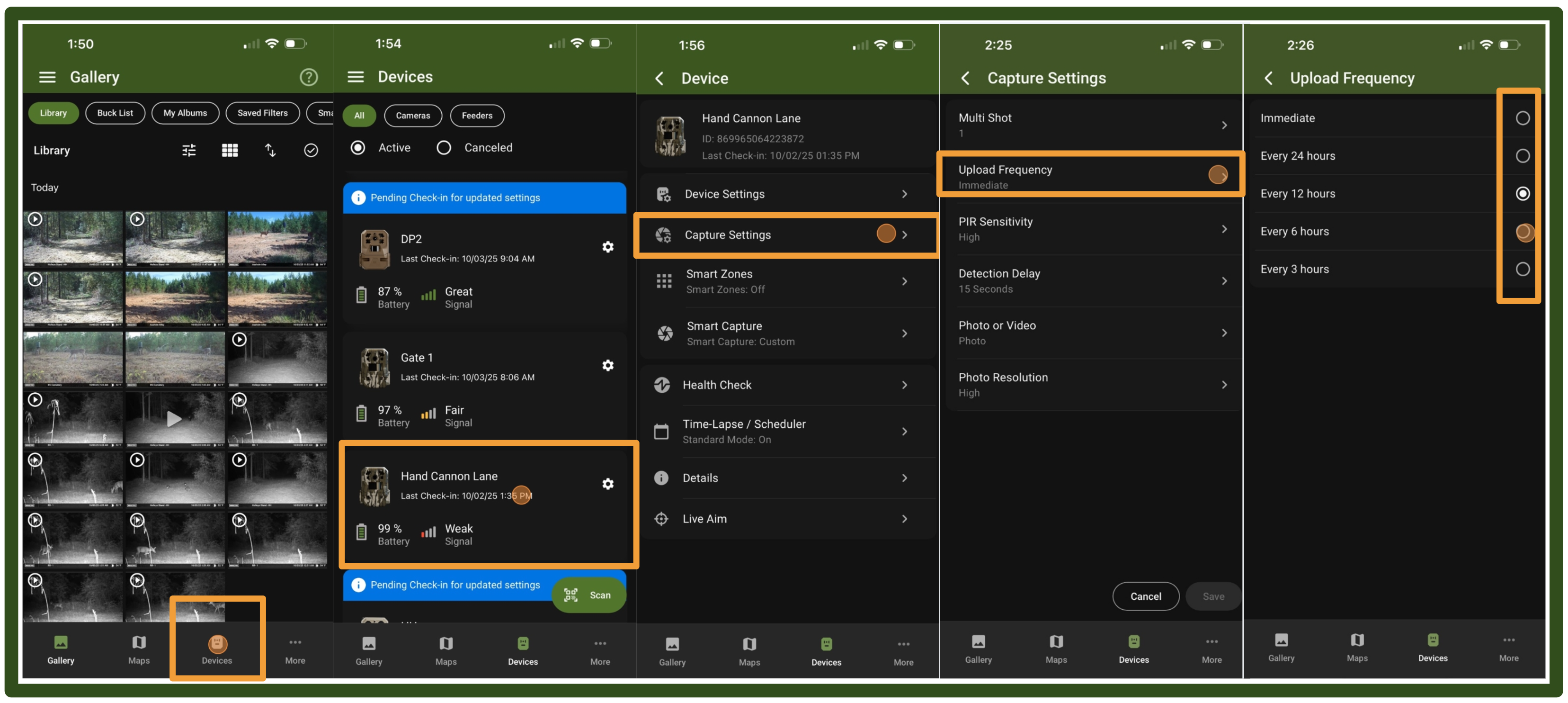 - If you canβt improve signal, adjust capture settings and select delayed uploads (hourly, 6-hour, or daily) to save power.